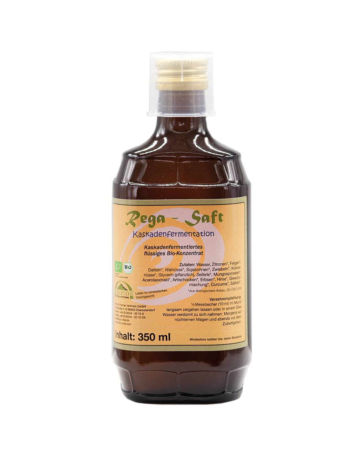 Zur Herstellung des Rega-Saftes wurde das einzigartige und aufwendige Verfahren der Kaskadenfermentation entwickelt. Dabei werden beste Früchte, Nüsse und Gemüse aus ökologischen Anbau in vollreifem Zustand in mehreren Schritten in kleine Moleküle zerlegt und zu einem flüssigen Konzentrat fermentiert. Dieses Konzentrat enthält das Beste seiner Zutaten, kann von den Zellen des Körpers optimal aufgenommen werden und ihnen dort neue Energie zuführen.